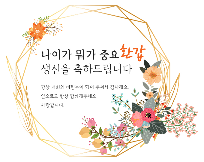 환갑을 진심으로 축하드립니다. 늘 건강하고 멋진 모습으로 저희 곁에 오래 있어주세요.