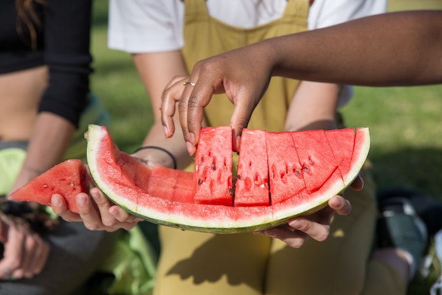 수박의 칼로리는 100g당 30kcal 정도라서 낮은 편인데요. 식이섬유도 다량으로 함유되어 있어서 포만감이 높습니다. 따라서 다이어트에 도움이 됩니다. 수박의 시트룰린 성분은 지방의 축적을 억제하는 효과가 있습니다.