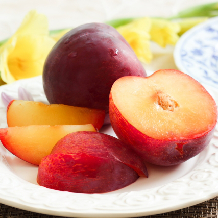 자두는 대부분 수분으로 구성되어 있고, 식이섬유도 많아서 포만감이 높은 과일입니다. 하지만 칼로리는 100g당 25kcal밖에 되지 않기 때문에 체중 조절할 때 먹기 좋은 간식이지요. 물론 당분이 들어 있으니 적당한 양만 먹는 것이 다이어트에 도움이 되겠습니다. 자두에 들어 있는 시트리닌 성분은 이뇨 작용이 있어 나트륨과 노폐물을 배출시키므로 부기 완화에도 좋습니다.