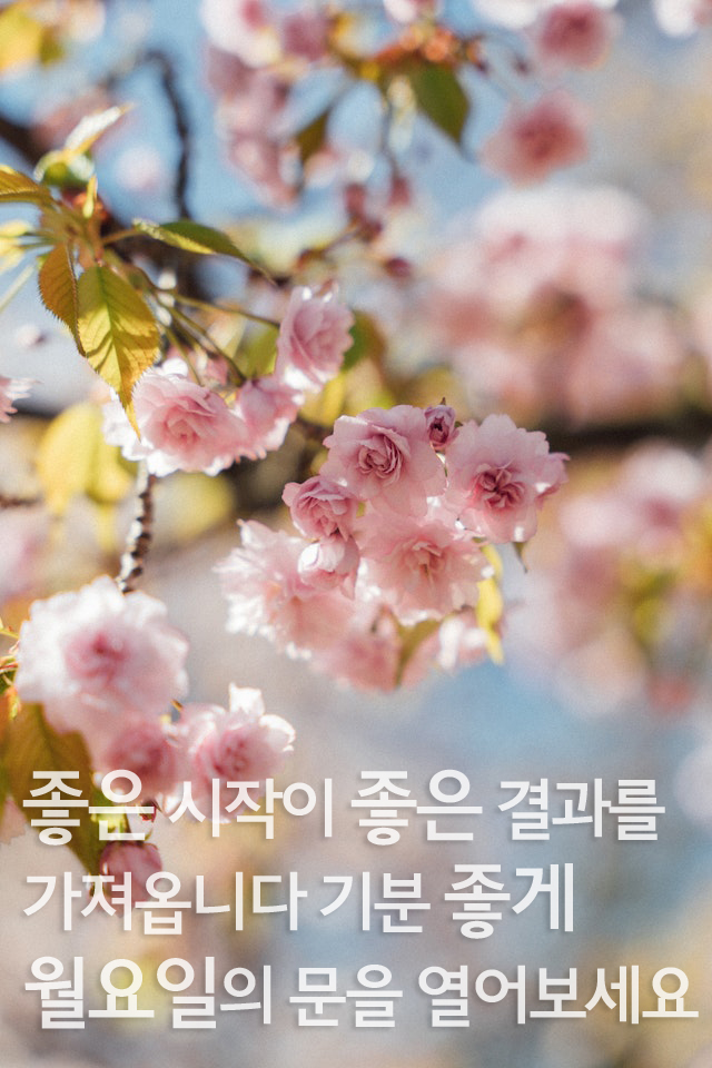 한 주를 시작하는 월요일입니다. 즐겁고 상쾌하게 한 주를 시작하세요.