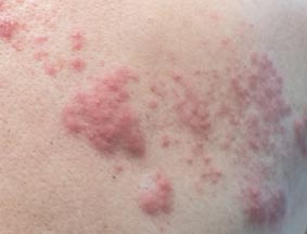 제가 대상포진을 의심했던 이유는 몇 년 전에 가족 중에 대상포진에 걸린 사람이 있어서였는데요. 동그란 빨간 점 위에 수포가 뽕뽕 올라온 모양이었고, 젊어서 그런지 큰 통증을 호소하지 않았거든요. 그래서 대상포진인줄 모르고 피부약만 바르다가 나중에 낫지 않아서 병원에 갔고, 대상포진이라는 진단을 받았습니다.