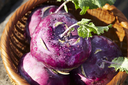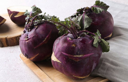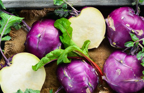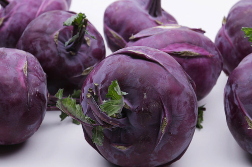 콜라비에 함유된 글루코시놀레이트 함량은 무의 약 13~29배나 되는데요. 글루코시놀레이트 성분은 무, 양배추, 브로콜리 등 십자화과 채소를 씹거나 소화할 때 생성되는 파이토케미컬의 일종입니다. 연구에 따르면 글루코시놀레이트에서 분해된 설포라판이라는 물질이 암세포의 성장을 막고, 사멸을 촉진해서 강력한 항암작용을 한다고 해요. 따라서 콜라비는 방광암, 유방암, 간암 등 각종 암과 위장 및 심혈관 질환, 당뇨 예방에도 효과적이라고 합니다.