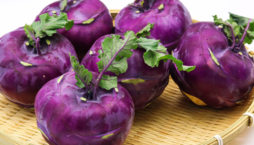 콜라비에 함유된 글루코시놀레이트 함량은 무의 약 13~29배나 되는데요. 글루코시놀레이트 성분은 무, 양배추, 브로콜리 등 십자화과 채소를 씹거나 소화할 때 생성되는 파이토케미컬의 일종입니다. 연구에 따르면 글루코시놀레이트에서 분해된 설포라판이라는 물질이 암세포의 성장을 막고, 사멸을 촉진해서 강력한 항암작용을 한다고 해요. 따라서 콜라비는 방광암, 유방암, 간암 등 각종 암과 위장 및 심혈관 질환, 당뇨 예방에도 효과적이라고 합니다.